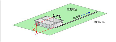 風管式室內機為超薄設計,狹窄空間中安裝建議無需排水泵,如吊頂內空間較大、排水距離較遠的,可選配冷凝水排水泵。